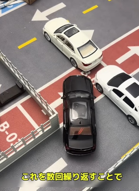 おもちゃの車でやるからミリ単位で角に接近できるけど実際にやると間違いなくドア凹ます